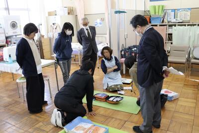8日の入学式・始業式に向けて、準備を進めているところですが、学校薬剤師の先生を講師にお迎えし、教職員を対象とした救急対応研修を実施しました。
