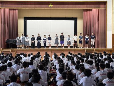 本日、生徒朝会として、学校総合体育大会および今後行われる各種コンクールの壮行会を行いました。各部活動の部長たちは、大会に向けた目標や意気込みを力強く語り、全校生徒からは大きな拍手と温かい応援が送られました。これまでの努力を胸に、仲間と支え合いながら力を発揮してほしいと思います。これまでの練習を支えてくださった家族や顧問の先生、コーチ、そして仲間への感謝の気持ちを忘れずに、精一杯頑張ってください。皆さんの活躍を心から期待しています。