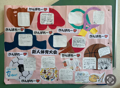 生徒朝会での壮行会に続き、掲示物が貼られました。