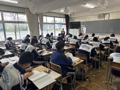 15日のCBT(理科・質問調査)に続き、3年生が国語と数学の調査を紙で実施しました。