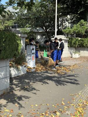 そんな中、男子バスケットボール部の生徒たちが率先して校門周辺の清掃活動に取り組んでくれました。竹ぼうきを手に仲間同士で声を掛け合いながら手際よく作業を進め、みるみるうちに正門周辺や学校周りが綺麗になりました。落ち葉を集めきれいに片づける姿には、部活動で培った協力とチームワークがにじみ出ており、見ていて大変頼もしさを感じました。