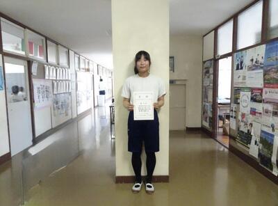 この生徒は県大会で見事個人1位、団体2位となり、その実績を市長・教育長に報告しました。