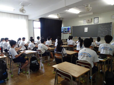 続いて、各学年の代表生徒が登壇し、二学期に向けての決意を発表しました。学習面での目標や行事に向けての取り組み、仲間との協力の大切さなど、それぞれの学年らしい言葉が力強く述べられ、全校生徒の心に響く時間となりました。