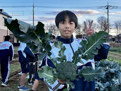1年生の総合的な学習の時間に育てていた冬野菜の収穫を行いました。物価高騰の折、新鮮な野菜をご家庭に届けることができました。今年は暑い日が続き、最初に植えた白菜は全滅。大変厳しい中、総合的な学習の係の中心に、手入れを行ってくれていました。最後も、畑の後片付けまでしっかりと頑張ってくれました。ありがとうございました。