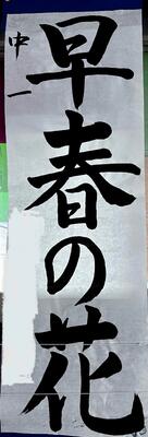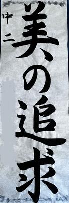 校内書き初め展覧会で掲示されている作品の中からいくつかをご紹介します。県展に出品作品です。