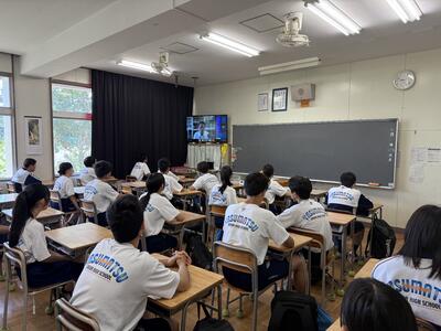 真夏の青空が広がる中、バスに乗り込み、会場へと向かいました。