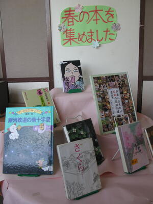 ②5月のテーマ展示「春の本集めました」(担当2名)