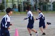 3つの学年の各クラスが、赤、青、黄、緑の4色に分かれて練習しています。各団の3年生が種目ごとにリーダーとなり、1・2年生を引っ張って練習をする姿は頼もしいかぎりです。