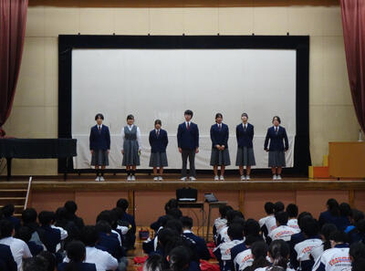 朝会では、後期委員会の委員長となった2年生一人一人から、これからの委員会活動に向けた抱負が語られました。先輩から役割を引き継ぎ、学校を支える立場となった自覚と責任が言葉の端々に表れ、頼もしさを感じる場面でした。