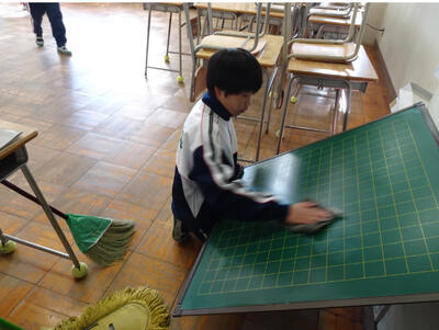 2学期の締めくくりとして、全校生徒で大掃除に取り組みました。当日は1時間という限られた時間の中でしたが、教室や廊下、特別教室、昇降口、トイレ、校庭周辺など、それぞれの分担場所で一人一人が役割を意識し、黙々と作業に励む姿が見られました。床の汚れを丁寧に拭き取ったり、窓や棚の隅まで手を伸ばしたりと、普段の清掃以上に細かなところまで気を配りながら活動する様子から、学校を大切に思う気持ちが伝わってきました。仲間と声を掛け合い、協力しながら進める中で、きれいになる喜びや達成感を感じることができたことと思います。清掃後の校舎は、心なしか明るく感じられ、新しい気持ちで新年を迎える準備が整いました。この大掃除で培った「気付き、考え、行動する力」を、今後の学校生活にも生かしていってほしいと思います。