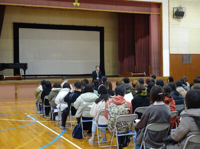 本日、新入生保護者説明会を実施しました。ご多用の中、多くの保護者の皆様にご来校いただき、誠にありがとうございました。説明会では、学校の概要や学習・生活のきまり、ご家庭との連携等についてお話しさせていただきました。皆様が熱心に資料に目を通され、真剣に耳を傾けてくださる姿から、お子様の中学校生活への期待を感じ取りました。
