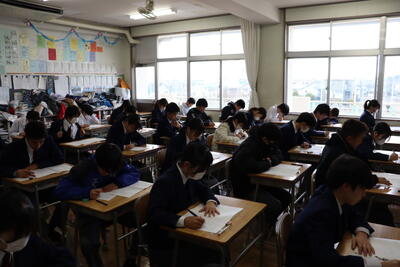 この一年間の学習のまとめとなる大切なテストに、どの生徒も真剣な表情で取り組んでいました。日頃の努力の成果を発揮しようとする姿から、学年の成長を感じることができました。