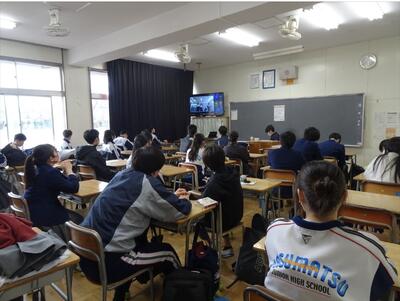 生徒会長からは、三送会に向けた準備の大切さと、3年生への感謝の気持ちを形にしていこうという呼びかけがありました。また、「1月行く、2月逃げる、3月去る」という慣用句を用い、年末年始から年度末にかけては行事が多く、時間があっという間に過ぎていくことを踏まえ、「限られた時間だからこそ、目の前のことに丁寧に取り組み、一日一日を大切にしていこう」と全校にメッセージが送られました。