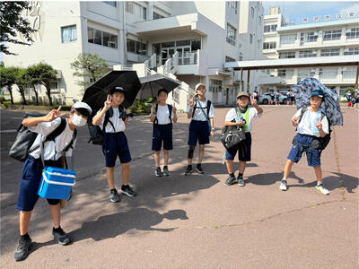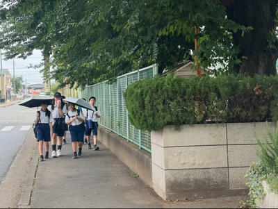 さわやかな青空の下、1年生が「安松地区地域巡り」を行います。