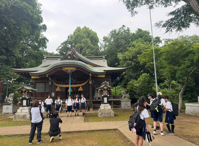 生徒たちは事前に学習した内容をもとに、地図を手にグループごとで出発し、地域の施設や歴史ある場所を巡ります。