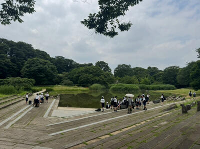 金山緑地公園にも元気な安中生がいました。道中、2組4班の生徒と柳瀬川沿いを歩いているとカワセミが飛んでいきました!